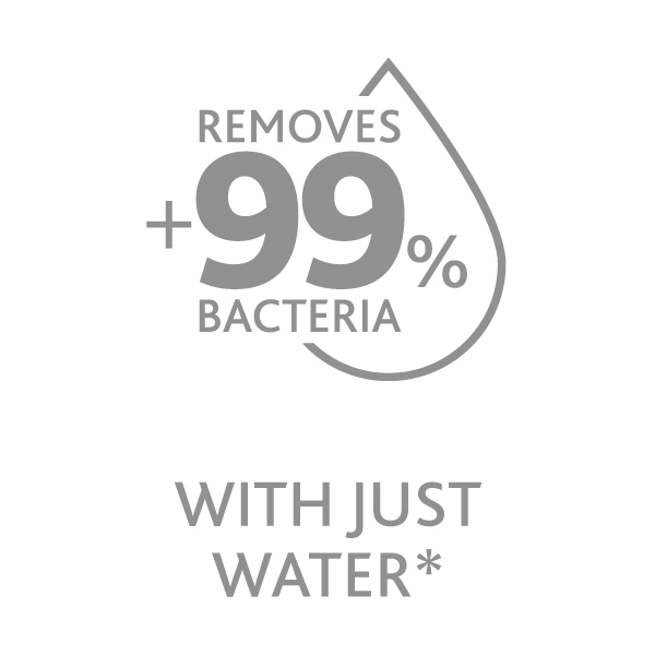 • Multi-purpose microfibre mop head removes over 99% of bacteria with water.*