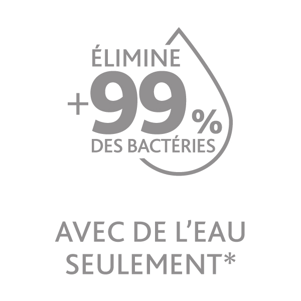 • Les têtes de vadrouille en microfibres éliminent plus de 99 % des bactéries avec juste de l’eau.